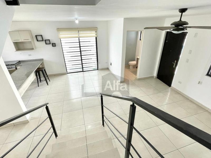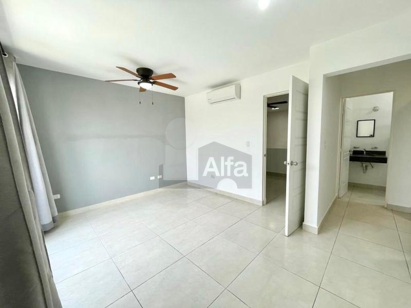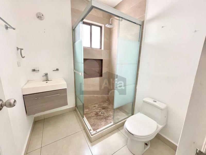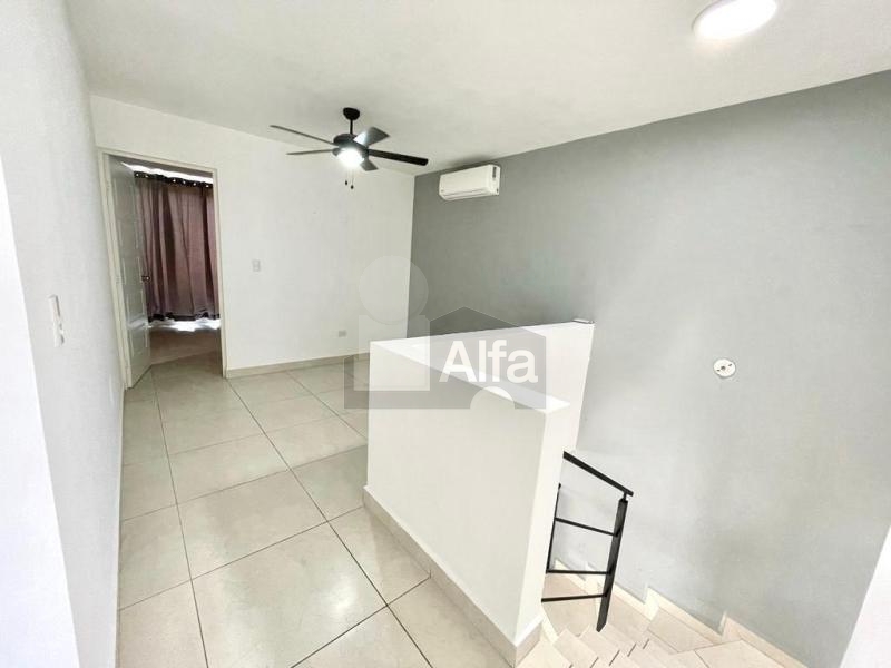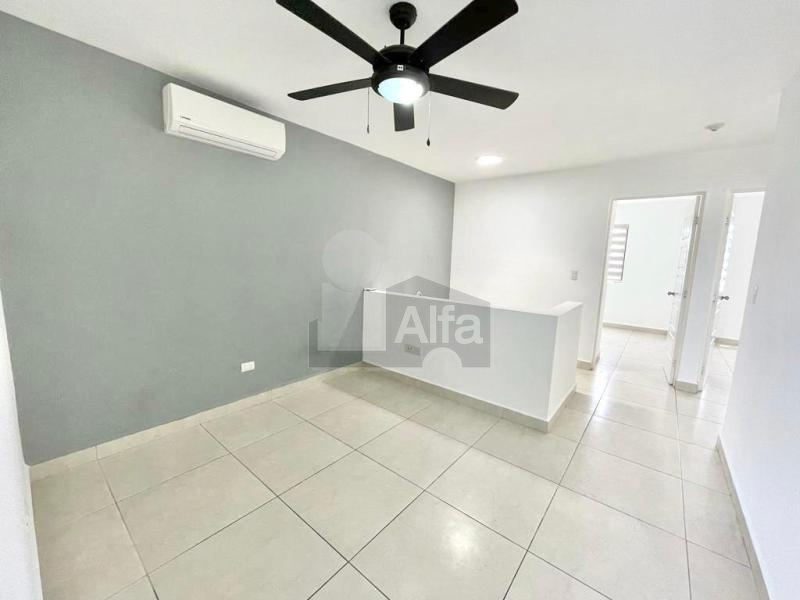 Planta alta: estancia familiar, tres recámaras, las secundarias con closet y comparten baño, y la principal con amplio closet, baño y balcón con vista al parque.
