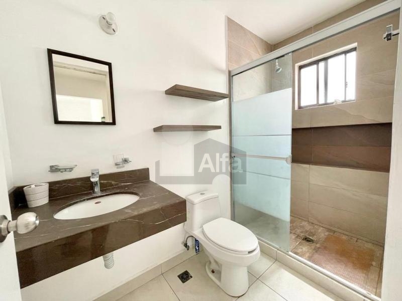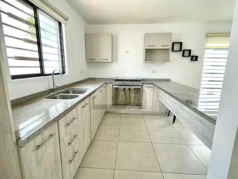 Equipada con protectores de ventana, 4 minisplits (en sala y recámaras), abanicos de techo, persianas, cocina con cubierta de granito, estufa, boiler, closets, canceles en regaderas.