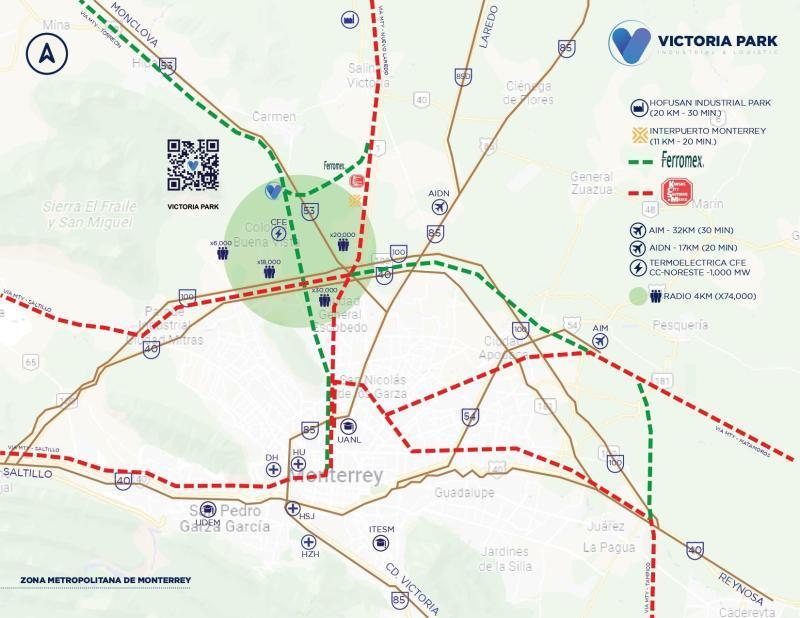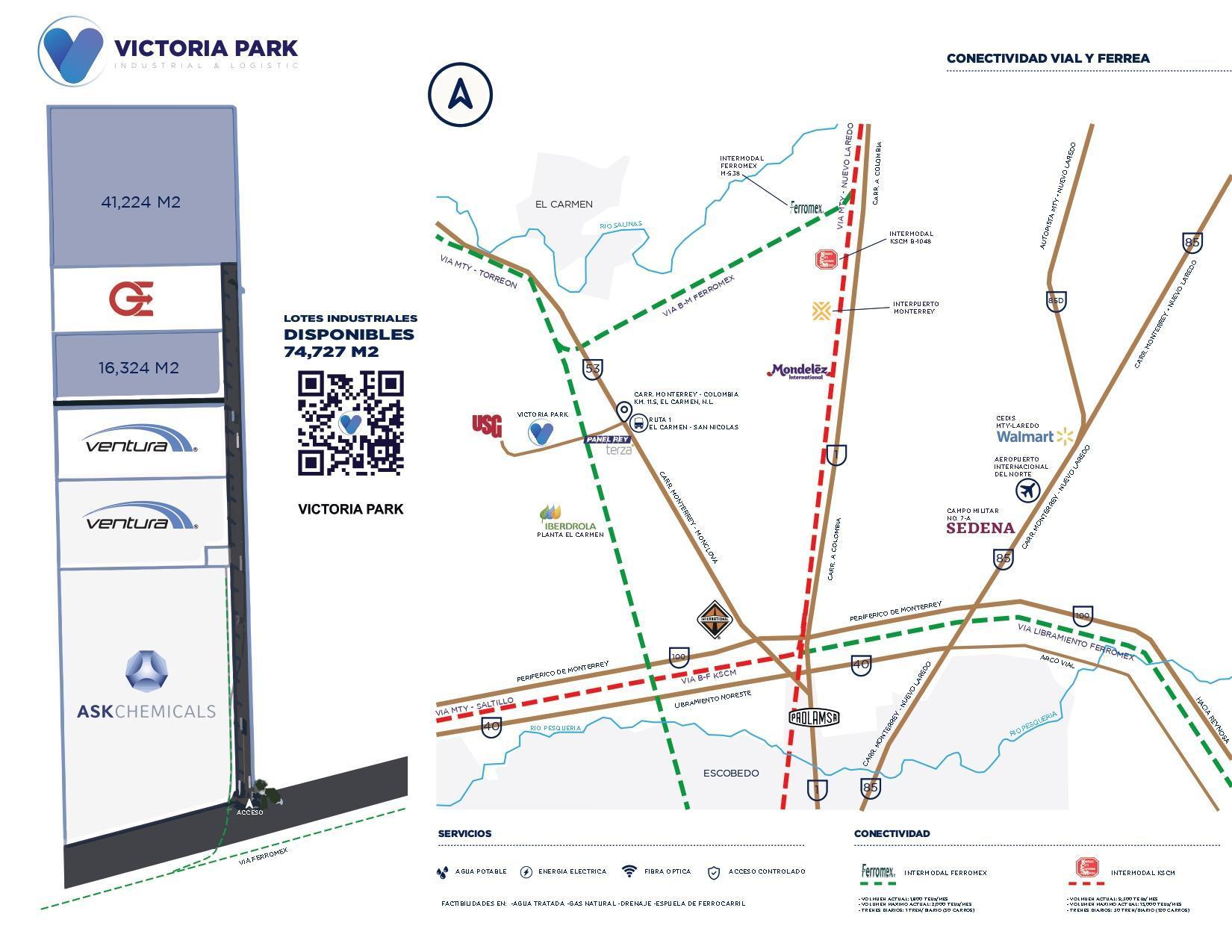 Energía eléctrica: cuenta con una línea eléctrica interna donde CFE podrá brindar el servicio requerido. 200 kvas disponibles por polígono incluido.