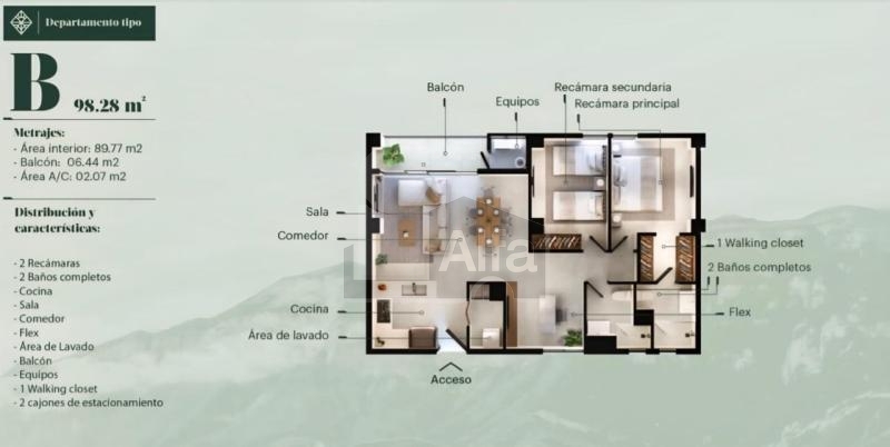 Tercera Torre en Fraccionamiento Privado a la altura de la Rioja, donde se vive muy en contacto con la naturaleza, en las Faldas del Cerro, Con 3 hectáreas de jardín en la parte de atrás del Edificio y vistas espectaculares. Amenidades: Alberca, Gimnasio, Salón de eventos para 50 personas, asadores, área de juegos, Fire pit. Cerca de Pueblo Serena, Esfera, Pletórico, Plaza Omnia, Costco, HEB, Fresko (Esfera), Soriana (Pueblo Serena) Centros de educación como: Prepa TEC Valle Alto, Oxford Academy Mty, Colegio Mirasierra, Udem, San Roberto, y con centros de salud como el Christus Muguerza, Wellmedic (Pueblo Serena) y oficinas como : Quadra Towers, Punto Aura, The Village. PRECIOS DESDE: 5.8 MDP, - M2 DESDE: 98 m2 hasta 145 m2, - ESQUEMA DE PAGO: 10% (Enganche Inicial) -10% (Diferido a 21 mensualidades) - 80% (Contra entrega) - PRECIO POR M2 DESDE: $50,476 pesos.- ENTREGA: Otoño 2027