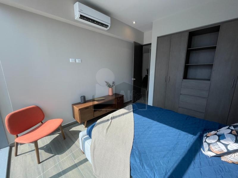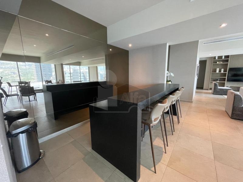 1 recámara, 1 baño, 1 cajón de estacionamiento. Ubicado en Valle Poniente con hermosas vistas panorámicas hacia la Huasteca y la ciudad. Entrega inmediata, equipados. Sala comedor con ventanales y vistas hacia La Huasteca. Cocina integral con barra de granito, campana, horno y parrilla eléctrica. Cancelería de vidrio, Closet, Cristales Duovent, Iluminación led. La recámara cuenta con vistas panorámicas. La torre cuenta con lavandería en el sotano 1.