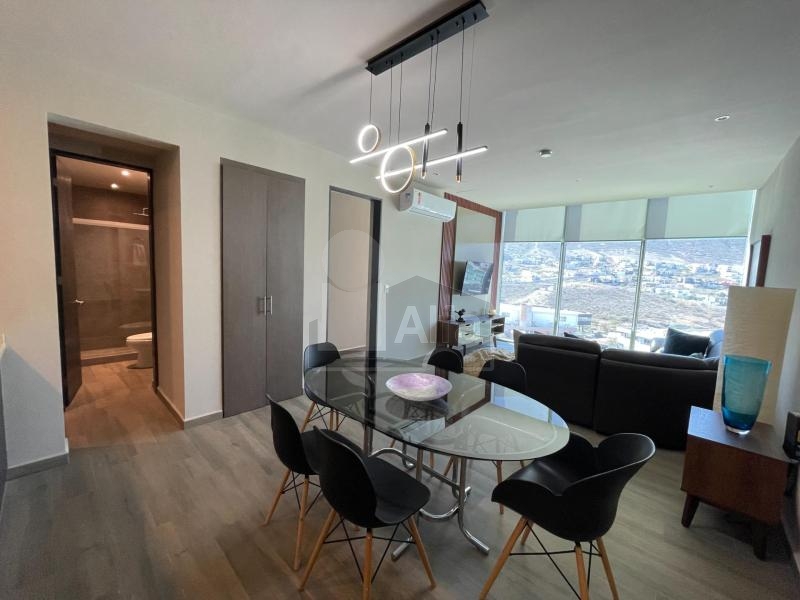 Departamento en renta en Jardín Secreto, El Aguacatal, Santa Catarina, N.L. $35,000 más $1,500 de servicios (luz, agua e internet). AMUEBLADO. Departamento de 78m2 en Piso 15. 2 recámaras, 2 baños, 1 cajón de estacionamiento. Ubicado en Valle Poniente con hermosa vista hacia la Huasteca y la ciudad.